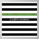 Dieses moderne, breite, schwarz-weiße Streifen Muster Plakat mit einem grünen Glitzer-ähnlichen Streifen durch Hinzufügen des Namens eines Mädchens. Dieses trendige, gestreifte Muster ist perfekt für die schicke Mode. Flachbild, NICHT Glitzer.