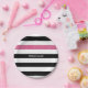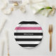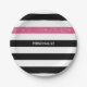 Modern Black Stripes IMITATE Rosa Glitz und Name Pappteller