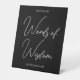 This black and white graduation tabletop sign features elegant script typography on a bold background — perfect for a stylish grad party.