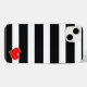 A modern and trendy design of thick black and white stripes and a red heart, that is placed in the bottom corner of the design. This item is fully customizable. You may add your own text or you may want to change the stripe colours, the choice is yours.