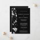 This elegant wedding invitation features a striking black background adorned with a graceful white botanical vine design that cascades vertically along one side. The flowing leaves and curving tendrils add a timeless, romantic feel while maintaining a clean, modern aesthetic. Crisp white typography contrasts beautifully against the dark backdrop, creating a refined and formal look that is easy to read and visually balanced. The overall design blends classic elegance with contemporary simplicity, making it suitable for a wide range of wedding styles—from traditional and formal to modern and minimalist—and works beautifully for any couple seeking a sophisticated, gender-neutral invitation.