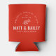 Full-color custom printed can coolers make a fun and functional wedding favor your guests will love! Personalize the template with the bride and groom's names or monogram initials. Add your wedding date, the city, state or venue name or any other custom text. This modern rustic logo-style design features a simple floral stem and mixed typography in cherry red and white colors. Use the design tools to choose any background color, edit the fonts or upload your own photos to create a completely custom wedding favor to match your wedding colors and style!