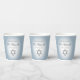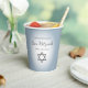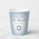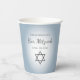 Modern Bar Mitzvah Star of David paper cups, with a simple blue and dusty gray design. With customizable lettering, you add your own text. A great addition to your child's Religious milestone.