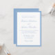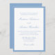 Set a fresh, airy tone for your wedding with this light blue invitation, framed by a soft blue border that brings a calm and refined feel to the design. The couple’s names are displayed in graceful calligraphy, with the wedding details presented below in clean serif lettering for a balanced, timeless layout. The gentle color palette and classic typography make this invitation a beautiful choice for coastal venues, summer celebrations, and elegant ceremonies.