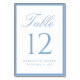 This light blue table number card brings a soft, airy elegance to your wedding reception tables with a crisp border that frames the design without overpowering it. Flowing calligraphy at the top introduces the table number, which is displayed prominently in serif type, with the couple’s names and wedding date shown beneath for a personalized touch. The gentle blue hue is ideal for spring, summer, and coastal weddings seeking a refined yet fresh look. This card measures 3.5"x5". Edit each table number individually and add them to your cart to ensure a smooth ordering process.
