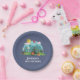 Blue camping birthday party paper plates. Edit this template to create your own birthday party paper plate. Made to match our "Modern Navy Blue Camping Birthday Party" invitations. View the collection linked on this page for matching items or visit our store for more birthday party designs.