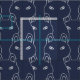 Modern Blue cat line art pattern Stoff