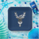 Modern Blue Christmas Imitats Silver Reindeer Pappteller