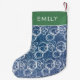 Modernes Blue Denim Jean Abstrakt White Muster Name Kleiner Weihnachtsmann Strumpf. Moderne blaue Jeans mit abstraktem weißem Muster und Namen auf grün - personalisieren Sie mit Ihrem Namen.