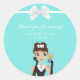 Modern Blue Diamond Box Bow Brautparty Fevor Runder Aufkleber