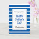 Dies ist eine blau gestreifte Vatertagskarte für den Paten, die auf der Vorderseite mit seinem Namen personalisiert werden kann. Das Innere dieser modernen Happy Father's Day Card liest eine süße Botschaft, die Sie leicht personalisieren können, wenn Sie gewollt haben. Im hinteren Teil befindet sich das gestreifte Design mit einem Raum, an dem Sie das Jahr ganz individuell gestalten können. Das wäre ein toller Sake für ihn.