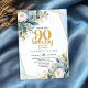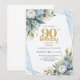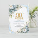 Modern Blue Floral Gold Frame 90th Birthday Invite Einladung