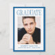 Celebrate your graduate with this Modern Blue Frame Photo Graduation Announcement, designed with a rich blue border that adds depth and refined contrast to the clean layout. The word “Graduate” appears in contemporary serif lettering across the top, while the graduate’s vertical photo takes center stage for a confident and polished presentation. Their name, school, and graduation year are arranged below in a balanced, easy-to-read format. On the reverse side, a horizontal photo is paired with space for personalized text, making it perfect for sharing graduation party details, future plans, or a heartfelt message. Suitable for both high school and college graduates, this classic blue photo graduation card offers a sophisticated and memorable way to mark this important milestone.