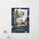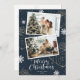 Modernes blaues Foto Frohe Weihnachtskarte mit Schneeflocken und Geschenken auf blauem Hintergrund. Personalisieren Sie diese Urlaubskarte einfach mit Ihren Fotos und Texten.