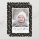 Senden Sie Ihren personalisierten und individuell gestaltbaren Urlaub Ihren Freunden, Freunden und Familie in einfachen, minimalistischen, eleganten, lustigen, festlichen und modernen Fotokarten! Ein wunderschöner Rahmen aus goldfarbenem und weißem Weihnachtskiefernholz auf schwarzem Hintergrund umgibt Ihr Foto auf Rundholzpapier. Der Gruß " Fröhliche Weihnachten " ist in eleganter Kalligraphie geschrieben, und unten zeigt Ihre individuelle Begrüßungsbotschaft aus Ihrem Familiennamen in der modernen Typografie. Umkehren, um ein schönes die ganze Weihnachtsbaum Acorns Muster Hintergrund zu enthüllen.
