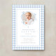 Modern Blue Gingham Bow Photo Boy Baptism Invitation. For best results upload a square image of the baby.
