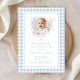 Modern Blue Gingham Bow Photo Boy Baptism Einladung