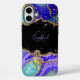 Modern Blue Glitzern Agate Monogram Name Case-Mate iPhone Hülle