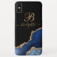 Eine einzigartige Version einer abstrakten, blauen Schwarz-Gold-Folie in einem geode-Handy-Gehäuse mit eleganter Schrift-Initial- und Skriptsignatur. Einzigartig, modern und trendig. Diese Schrift hat eine Armbanduhr, die am Anfang und am Ende des Namens hinzugefügt wurde. Sie können sie entfernen, oder Sie können einfach Ihren eigenen Namen zwischen den beiden Swashes hinzufügen. Wählen Sie Ihr eigenes Gerätemodell für dieses Design aus.
