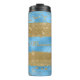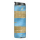 Der junge moderne Glitzer aus Gold schreibt personalisiert den Namen Thermaltumbler mit glitzerndem metallischem Blau und goldenen Pinselstrichen für ein personalisiertes Geschenk.