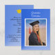 A unique card with a modern blue, gradient color scheme. Similar blue background on the back of the card containing invitation details. Suitable for a high school or college graduation. The smaller size allows you to enclose the card with you graduation announcement -- send it only to those you wish to invite to the party. The photo and all text are easily changed with the template. NOTE: there are online sources that allow you to create a free graduation website. Just do a search for it and choose the one you want. Selecting “Personalize this design” offers you several edit options to easily change the text (wording, plus type font, color, size, position) and to edit the design elements. You may also want to scroll down to the section “Transfer design to a product” for a few suggestions about other items this design can be used on.