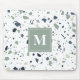 Modern Blue Green Terrazzo Marbella Monogram Mouse Pad