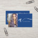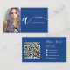 Simple white on modern blue logo initial hair makeup photo logo qr code with a brushed script typography add your business photo . Add your social media. With an elegant signature script font, all the colors are editable , add your logo.