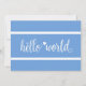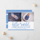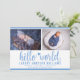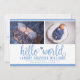 Eine blau handgeschriebene hallo Welt Foto Geburtsankündigung Postkarte, um Ihre neue Ankunft zu begrüßen. Schicken Sie diese Karte an Freunde und Familie, damit sie Ihr neues Freudenbündel sehen können.