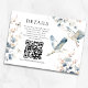 Moderne Blue Heron QR Code Hochzeitsdetails. Schöne blaue Vögel im Flug und weiches pastellfarbenes Blattwerk für dieses elegante Design. Personalisieren Sie die Wörter ganz einfach nach Bedarf. Ändern Sie einfach die Beispielurl auf die Ihrer eigenen Website, und Ihr QR-Code wird automatisch generiert.