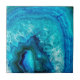 Steine, Kristalle und Mineralien sind ein zeitloser, trendiger Stil. Dieser Druck zeichnet sich durch ein nahes Bild eines lebendigen, blauen Gesteins aus, mit kleinen Kristallen in der Tasche. Eine helle türkisfarbene oder aqua-blaue Färbung mit einzigartigen Linien und Verband. Ein spielerischer, aber moderner und stilvoller Look. Bright Aqua Blue Türkise Geode Mineral Stone Keramik Tile