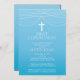 Schöne Einladung der First-Holy-Kommunion mit einer extravaganten, zarten Garage mit einem weißen hängenden Set auf einem schicken und beliebten blauen Ober-Hintergrund für einen Jungen. Umdreh die Einladung nach oben, um ein passendes Ober für eine besondere Touch zu finden. Erhältlich in unserem Shop in einer Vielzahl von Farben für ein Mädchen oder Junge.