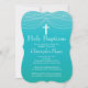 Schöne Elegant Boy Heilige Taufe oder stilvolle Weihnachtseinladung mit einer extravaganten, zarten Garland mit weißem Hängekreuz-Set auf einem schicken und beliebten türkisblauen Hintergrund. Dreh die Einladung nach oben, um eine passende Farbe wieder zu finden. Erhältlich in unserem Shop in verschiedenen Farben für ein kleines Mädchen oder einen kleinen Jungen.