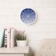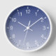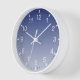 Die moderne, blau-weiße Gradientenrunde Wanduhr bietet schwarze Hände, weiße Ziffern mit weißen Stundenmarken und kleinere schwarze Minutenmarken.
