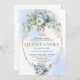 Modern Blue Peony Gold Frame Quinceañera Invite Einladung