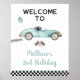 Herzlich willkommen bei Ihren Party mit einem personalisierten Schild. Zeichnen Sie das Schild auf einen Tisch in der Nähe des Eingangs, oder befestigen Sie das Poster auf Schaum und zeigen Sie es draußen auf einem Aal an. Dieses bezaubernde Design verfügt über einen blauen Rennwagen mit Flammendetails.