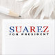 Zeigt "Suarez für den Präsidenten" in patriotisch blauen, roten und schwarzen Buchstaben und Text. Francis Suarez ist Bürgermeister von Miami und wird zum Präsidenten der Vereinigten Staaten gewählt. Mit diesem modernen, minimalistischen und stilvollen Design unterstützen Sie Suarez. Für Republikaner, Miami-Bewohner, Floridier, Amerikaner und Konservative. Coole Wahlkampfausrüstung.