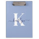 Diese hellblaue 12.5 x 9 Zwischenablage mit Ihrem Vornamen in einem trendigen Script-Schriftart in Marineblau, der Ihren ersten Start in einem modernen, weiß gekleideten Schriftart mit Kappe übertippt, ist perfekt für Sie. Es ist stilvoll und trendig und dennoch sehr klassisch. Es wird in so vielen Situationen praktisch sein. Ideal für Arbeit, Zuhause, Schule.