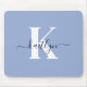Modern Blue Script Monogram Mousepad