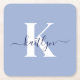 Modern Blue Script Monogram Rechteckiger Pappuntersetzer