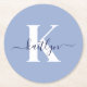 Modern Blue Script Monogram Runder Pappuntersetzer