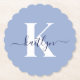 Diese hellblauen Untersetzer mit runden Kanten und ihrem Vornamen in einem schicken Schriftart in Marineblau, der in einem modernen Schriftart mit weißer Kappe auf den ersten Anfängen getippt wurde, sind ideal für den behalt von Tischen und Zählern, die frei von Wasserringen sind. Sie nehmen Tröpfchen auf, damit Sie sich keine Sorgen machen müssen, wenn Sie unterhalten oder einen Drink genießen. Sie sind stilvoll und trendig und dennoch sehr klassisch.