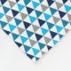 Diese bunte Fleecedecke weist ein niedliches geometrisches Muster mit kleinen grauen und blauen Dreiecken auf.