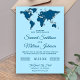 Erleben Sie Ihre Gäste mit dieser modernen Reise Thema Hochzeit Einladung mit einer blauen Weltkarte und moderne Typografie vor einem hellblauen Hintergrund. Fügen Sie einfach Ihre Veranstaltungsdetails zu dieser einfach zu bedienenden Vorlage hinzu, um sie zu einer einmaligen Einladung zu machen. Umdreh die Karte auf, um ein elegantes, blau-weißes Streifen-Muster auf der Rückseite der Karte zu erkennen. Diese Einladung ist vollständig anpassbar. Alle Texte sind editierbar und die Hintergrundfarbe lässt sich leicht auf das einstellen, was Ihnen am besten passt.