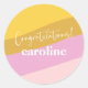 Moderne geometrische Streifen in blau-gelb und rosa Kundenwunsch Graduate Classic Round Sticker