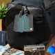 A harmonious blend of organic color and industrial structure. The front view leads with an expansive field of calming Teal, grounded by a sturdy Charcoal and White architectural grid. The back view introduces a technical transition, featuring a solid teal upper half that meets a detailed charcoal matrix. Together, they offer a balanced, 360-degree aesthetic that feels both airy and disciplined, perfect for modern lifestyles.