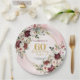 Modern Boho Burgundy Gold Floral 60th Birthday Pappteller