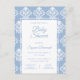Moderne böhmische, pulvrige, blau-weiße Barockmuster. Schöne Zierdusche Einladung. Editieren Sie die Vorlage einfach, um Ihr Baby Dusche Event Anzug. Moderne Boho Dusky Blue White Baby Dusche Ankündigung Postcard.
