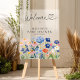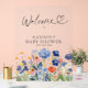 Elevate Madison's baby shower with this modern boho acrylic welcome sign! Premium clear acrylic features graceful script: "Welcome ♥ to Madison's Baby Shower" and "June 15th 20XX," with a stunning watercolor wildflower border blooming below — dusty blue cornflowers, cheerful white daisies, soft pink cosmos, coral accents, blue forget-me-nots, and lush greenery on transparent elegance. Perfect for spring meadow, boho garden, gender-neutral, or dusty blue themes. Includes sturdy easel stand for chic display. Durable, photo-ready, and coordinates with your full Baby in Bloom suite: invitations, guest book, napkins, plates, place cards!