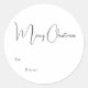 Feiern Sie die Freude der Saison mit diesem modernen boho fröhlichen Weihnachten bis vom klassischen Rundaufkleber. Das einzigartige und chic bearbeitbare Skript schafft eine Touch von Charme und Individualität. Das schlichte, elegante Schwarz-Weiß-Design mit einem klassischen böhmischen Bogen erinnert an ein skurriles Winterambiente. Der minimale und zarte festliche Schriftart verleiht Kreativität und Charme. Mit einem sauberen und einfachen neutralen Layout, spiegelt dieser Gruß das Wesen des Dezember in Stil und Anmut wider.
