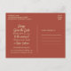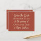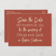 Moderne Boho Minimalistisch Burnt Orange Save the Date Postkarte. Niedliches Design, minimale moderne Ästhetik. Warme Terrakotta Rost braune Erdtöne. Mit zeitgenössischen Farben und Schriftzeichen.